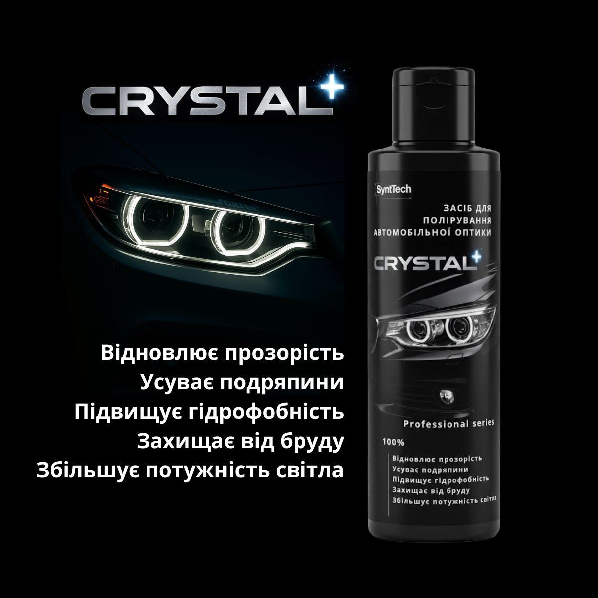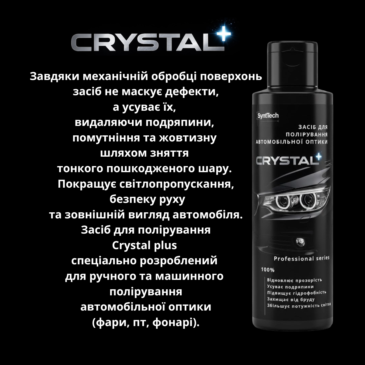 Засіб для ручного та машинного полірування автомобільної оптики Crystal+